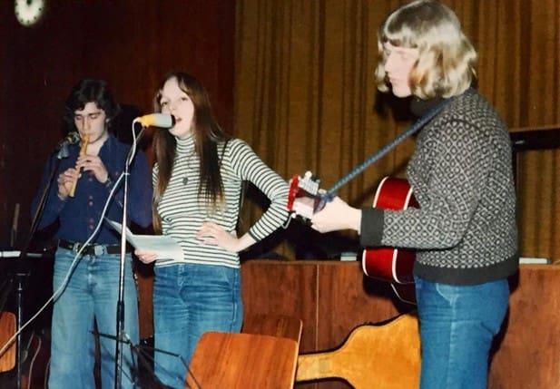 Elin also sang and played folk music during this time with her classmates from the Studentaskúlin í Hoydølum (Upper Secondary School in Hoydalar) – Ívar Bærentsen on guitar, and Bergur Hansen on flute. She herself occasionally played the piano during performances. They performed several times at the jazz club in the old B36 building and in the Old Club.
